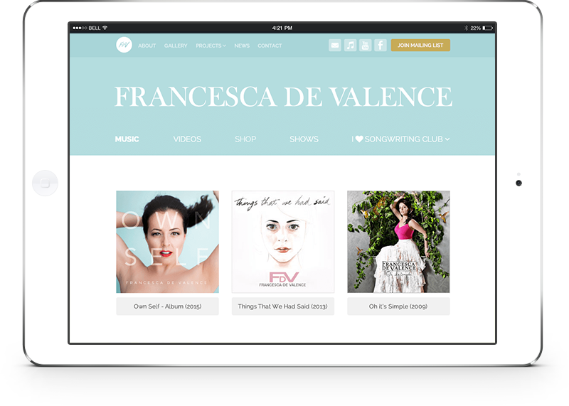 Francesca de Valence is a singer songwriter from Brisbane, who released her debut album, 'Own Self' in 2015. The songstress describes her album as 'unabashed and unapologetic self-expression, uncovering the powers needed to live her magnificent life'. These concepts were explored in the design of the album art, and later transferred to the design of Francesca's website.